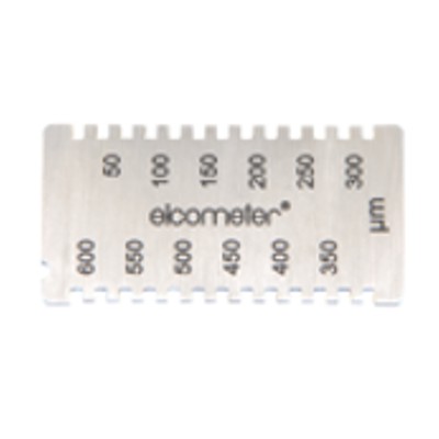 將濕膜梳垂直放置,接觸到基體。保持原地等待幾秒鐘,直到梳齒變濕。拿開濕膜梳. 濕膜厚度在“含漆”或“濕”齒最大值和“不含漆”或“干”齒最小值之間。